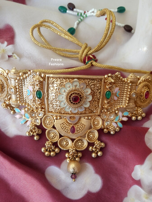 Traditional Rajwadi Choker set with meenakari work CH01- Presra Fashions