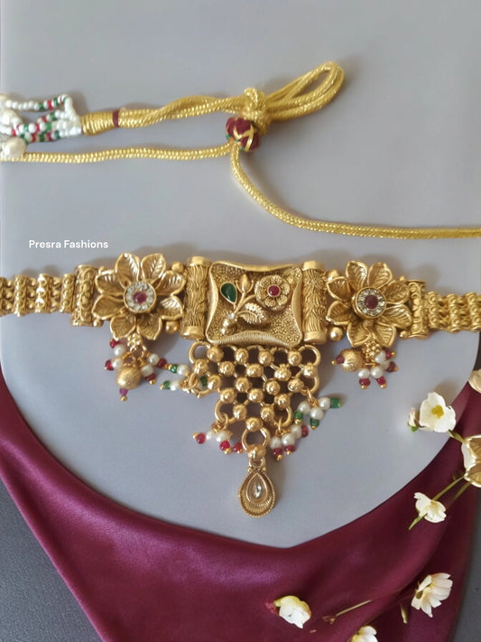 Rajwadi Choker Set Flowery design with Polki CH05- Presra Fashions