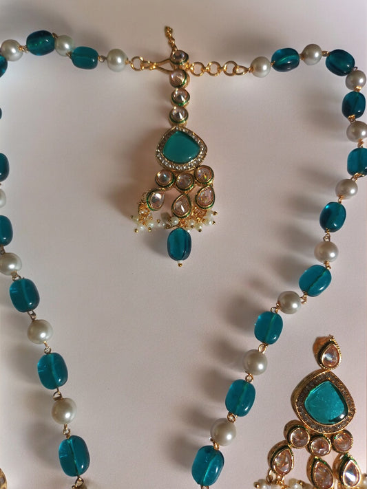 Monalisa beads chain with maangtika and ear rings M03-Presra Fashions
