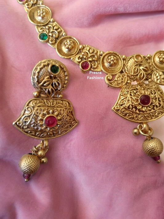 Simple and elegant Rajwadi necklace with earrings SN01-Presra Fashions